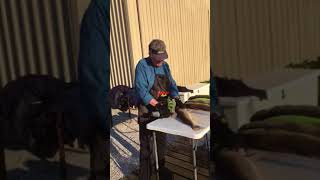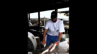 Expert fisherman Cutting catfish with an American Angler electric knife.